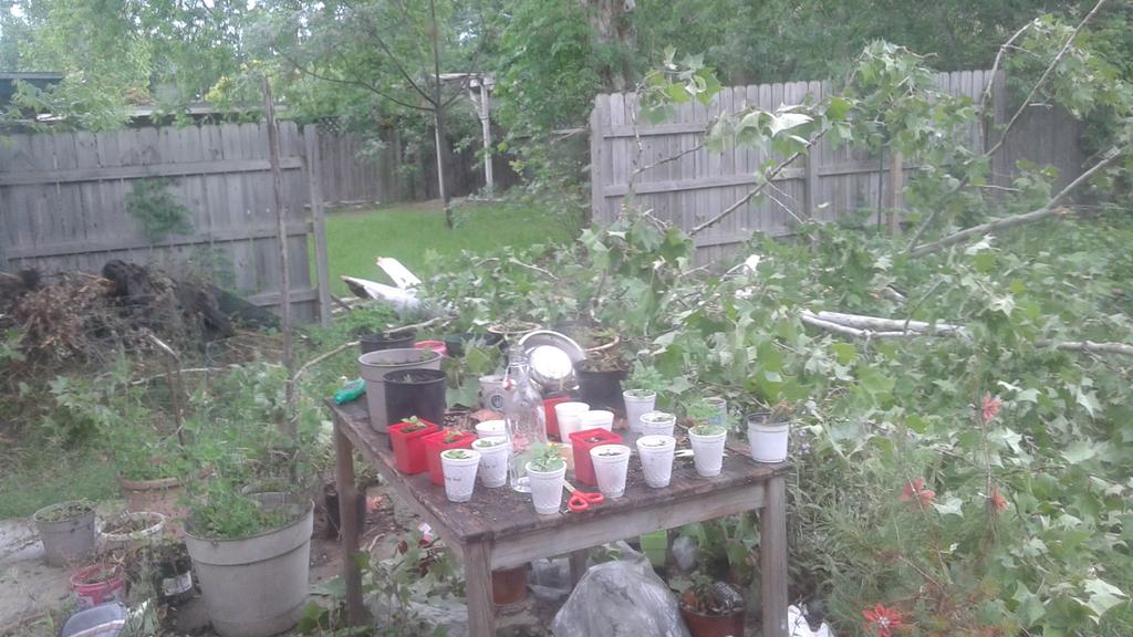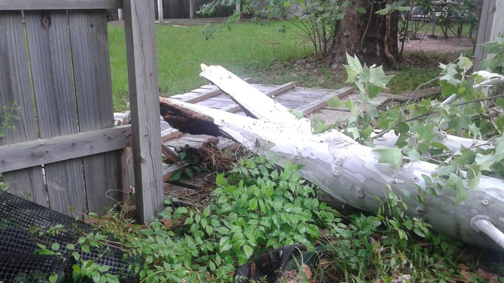 It was, in fact, the best possible result for "tree falls into the yard". It didn't hit the house. It didn't hit the roommate. It didn't hit a pet (though Zabina sure zipped inside looking startled). It didn't hit the shed, or the table of seedlings on the patio... Heck, it didn't even take out the tomato plants or grapevine trellis. It collapsed right across the brand new raised bed that hadn't even had soil put into it yet, and neatly pushed over a single section of fence.
