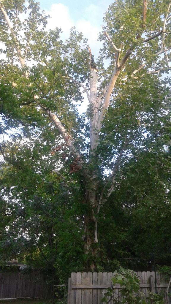 Oh gawd ... sycamores. They are almost as horrible a tree as a hackberry is to have in your yard. Their leaves have that thick cuticle and WON'T ROT EVER, they make those awful seed balls and drop them all over every year, and they're soft-wooded and rot out young. The only thing to be said in their favor, and that's pretty dubious, is that hollow trunks do make a haven for bees, squirrels, woodpeckers, and other hollow-dwelling things.